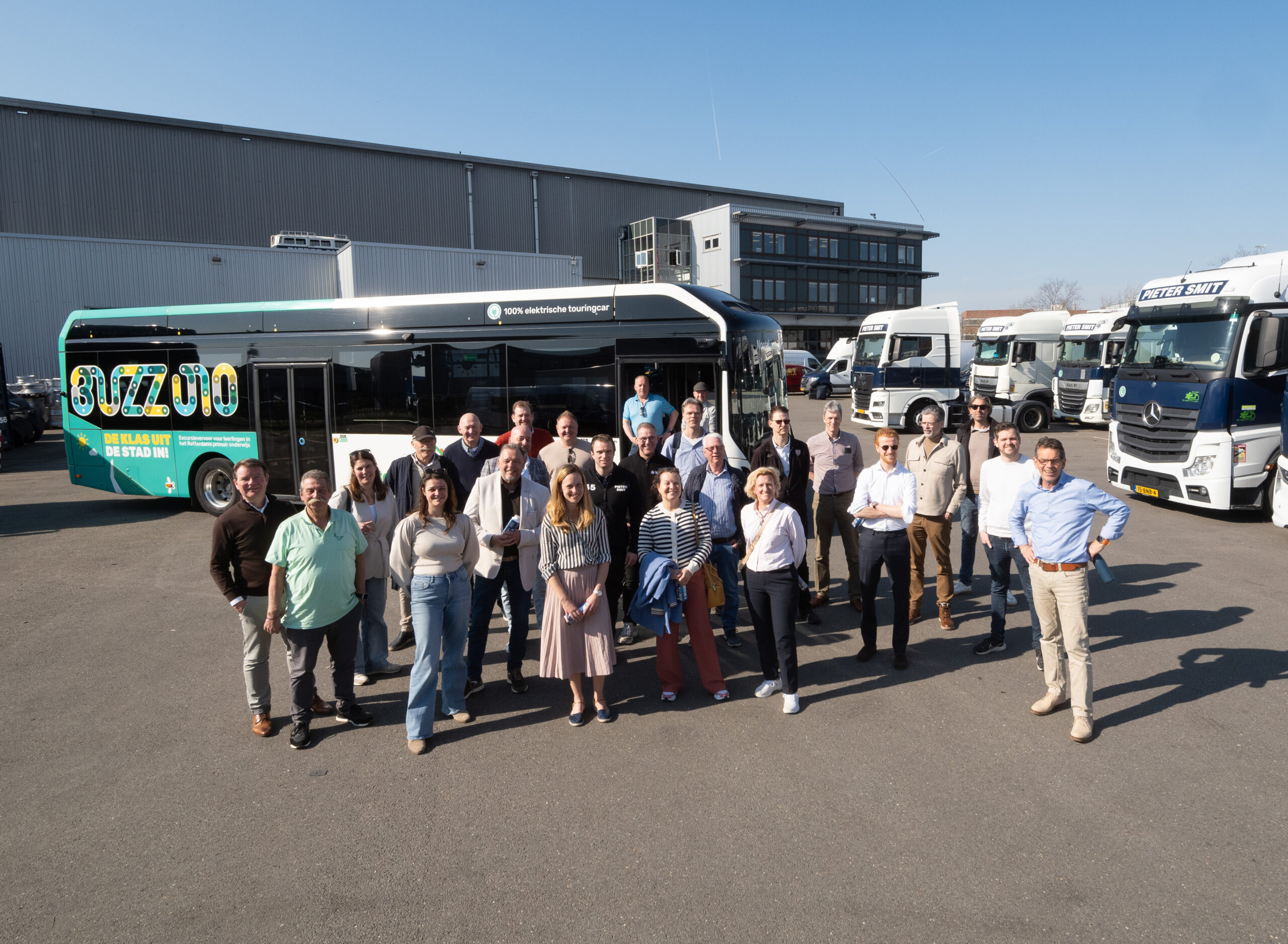 Hierna vertrokken de ondernemers met een volledig elektrische touringcar naar het gebouw van Pieter Smit Group in Nieuw-Vennep, een toonaangevende, logistieke transportverlener. Daar werden ze over het nieuwe laadplein met 4×400 kW snelladers en door het gebouw geleid door Rick Smits. In de loods met vloerverwarming werden de elektrische trucks grondig bestudeerd. Bij de nieuwe sporthal in Lincolnpark, ontworpen door Lichtstad Architecten, kregen de ondernemers een unieke inkijk in het pand tijdens de bouw door Gert-Jan Penning van BINX Smartility. Het verdiepte gebouw maakt gebruik van hout voor akoestiek en als duurzaam materiaal en oogt daardoor modern en luxe. Als laatste kwam de groep aan bij EXPO Greater Amsterdam, waar Koen Iking en Rienko Haan de ondernemers meenamen in de geschiedenis van het expositiegebouw en hun unieke uitdagingen, zoals het dak van zonnepanelen dat tegen de verwachting in al bijna twintig jaar werkt, maar waarvoor geen vervangende onderdelen meer gemaakt worden.