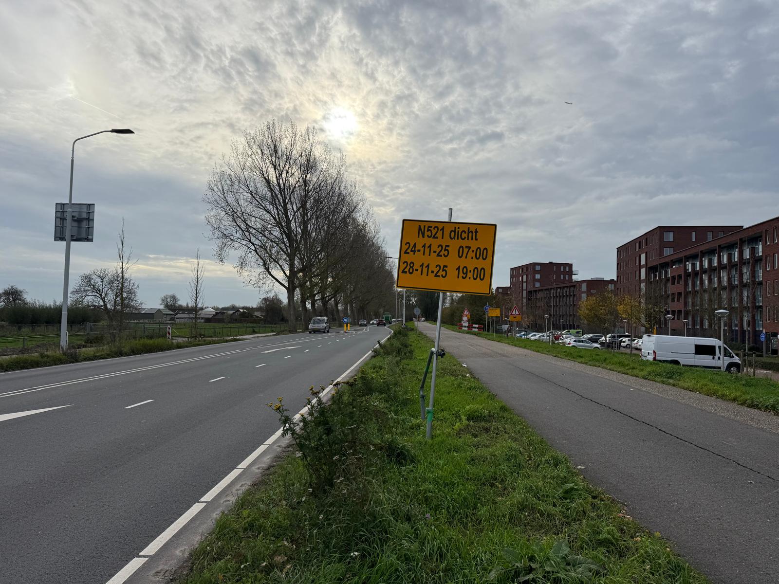 Afsluiting Bovenkerkerweg (N521) tussen Amstelveen en Uithoorn 24 – 28 november 2025