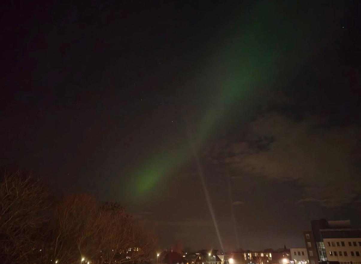 Deze keer hoefde je niet af te reizen naar Scandinavië of andere noordelijke landen om het noorderlicht te bewonderen een blik omhoog was genoeg. Mensen maakten massaal foto’s en genoten van de bijzondere kleuren en sluiers van licht in de lucht.