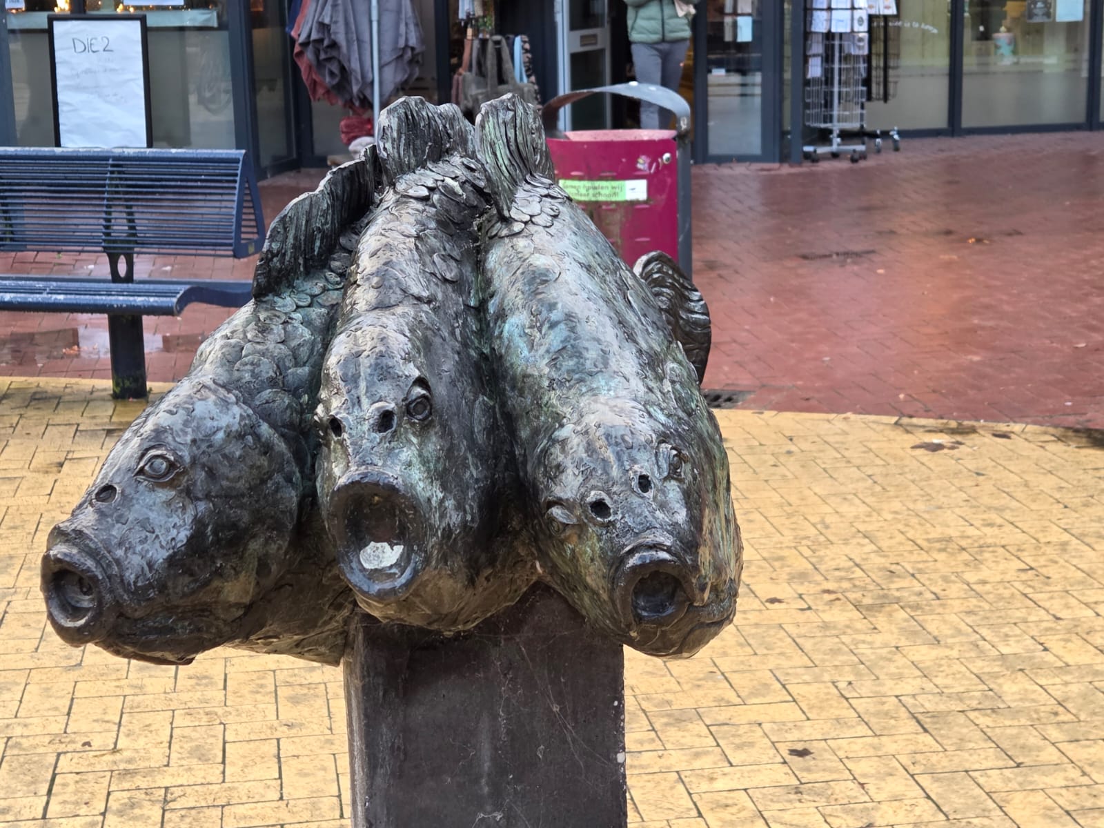 Deze week staat het beeld Drie Vissen centraal, een bronzen beeld van Wessel Bezemer. Hij omschrijft de drie vissen als drie karpers, die elk een ander karakter verbeelden. Het beeld staat in Kudelstaart, waar Bezemer tot voor zo’n tien jaar woonde en werkte. Daar liet hij zijn bronzen kunstroute van dieren achter, die begint bij het winkelcentrum met de drie vissen en via drie meeuwen en een bronzen veulen naar de Aalscholver in de Westeinderplas loopt.